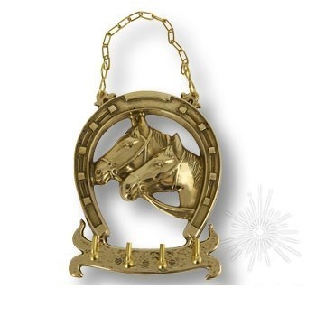Ключница "Подкова с лошадьми" 00070, материал Латунь, отделка Латунь, 110*114 мм